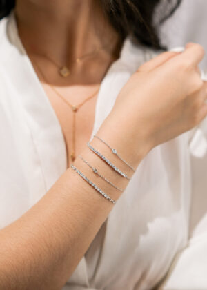 Tennis bracelet with adjustable chain (Square Prongs Settings)